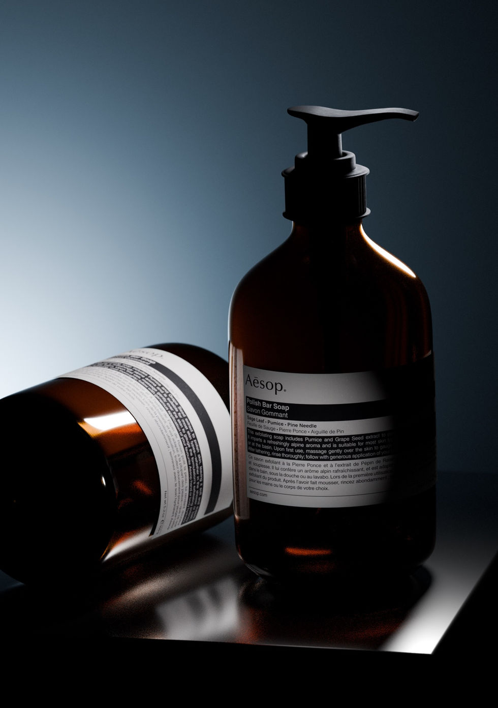 3D product rendering study of an Aesop soap bottle.